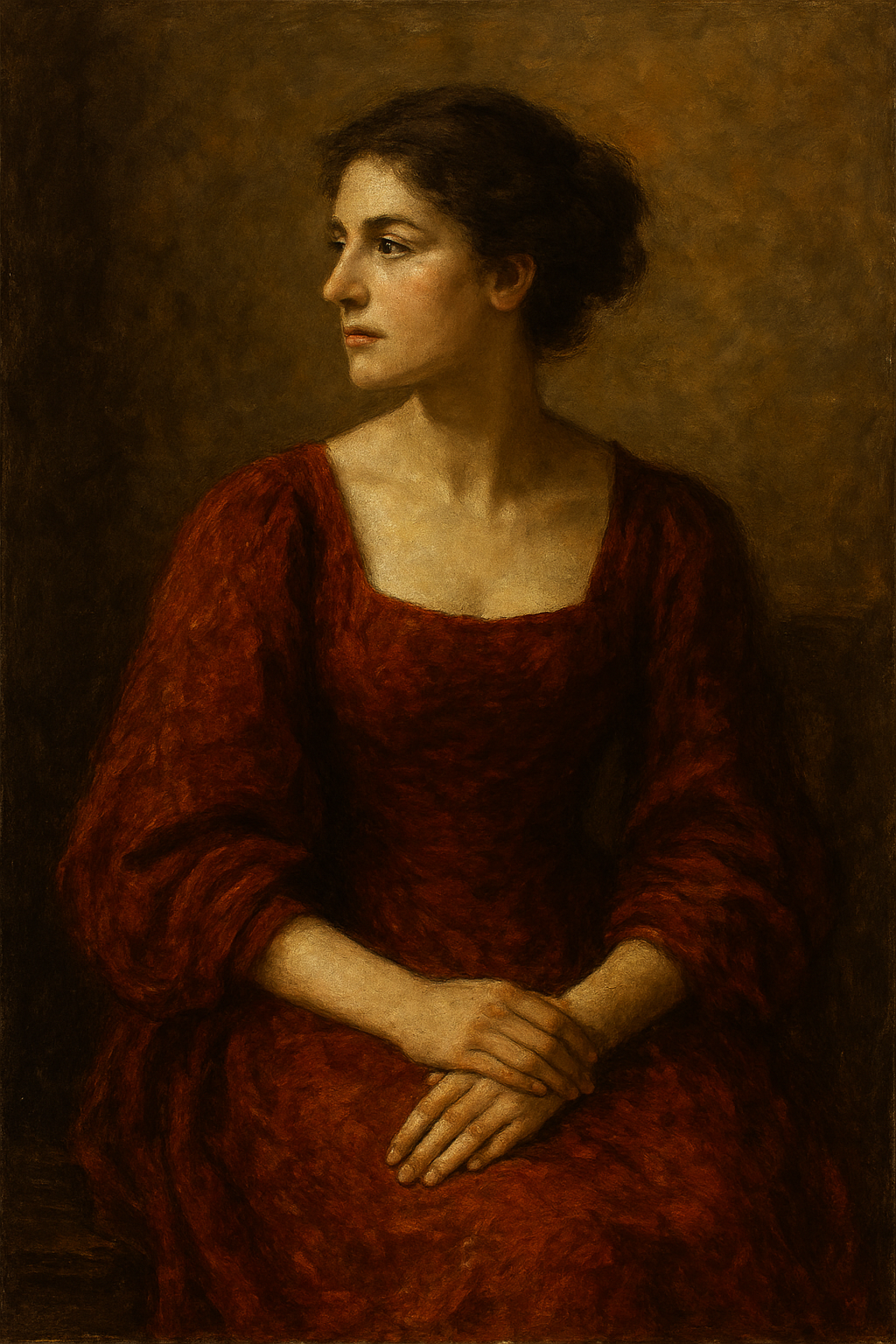 Veil of Stillness is a masterfully rendered oil portrait capturing a young woman in a moment of poised introspection.